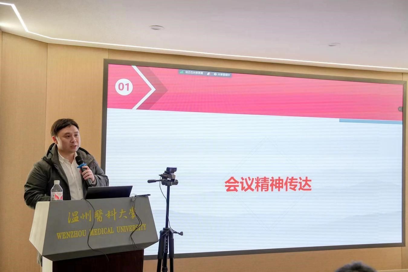会上,第一临床医学院(信息与工程学院)、第二临床医学院、眼视光学院(生物医学工程学院)、检验医学院(生命科学学院)、药学院分别就研究生党建引领、研究生培养模式创新、学科建设发展等方面成效与不足进行了汇报交流。