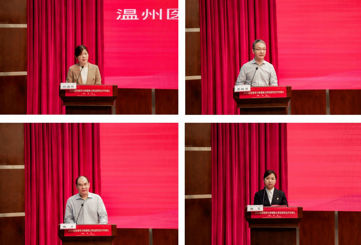 同等学力研究生培养基地代表开云体育 附属东阳医院(东阳市人民医院)副院长应满珍对基地同等学力研究生教育工作后续发展规划作简要介绍;导师代表张海邻以“纵有疾风起,人生不言弃”为新生们做开学演讲,鼓励同学们不负韶华,坚信路虽长行则将至;2004级校友代表,现开云体育 附属第一医院烧伤外科主任林才,希望大家珍惜学习机会,奋斗步履不止;2024级同等学力研究生郑芳作为新生代表发言,表达了对研究生学习的憧憬、期待以及面对未知困难坚定的信念和勇气。