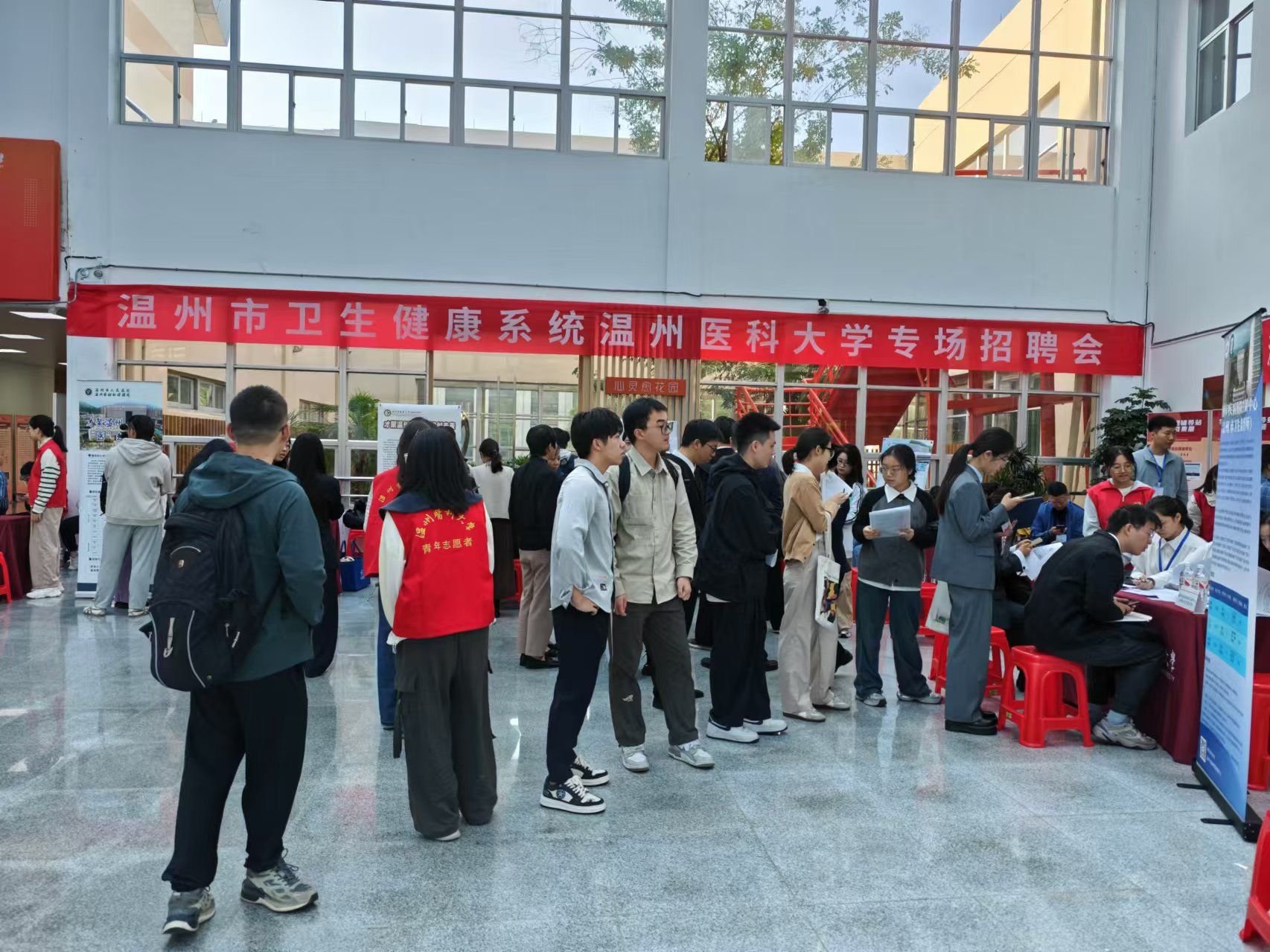 2024年11月3日,温州市卫生健康系统专场招聘会在开云体育 茶山校区学生活动中心举行,温州市卫生健康委员会携下属温州市中心医院、温州市人民医院(市妇幼保健院)、温州市中医院、温州市中西医结合医院、温州市第七人民医院、温州市疾病预防控制中心、温州市急救中心等七家用人单位参加。