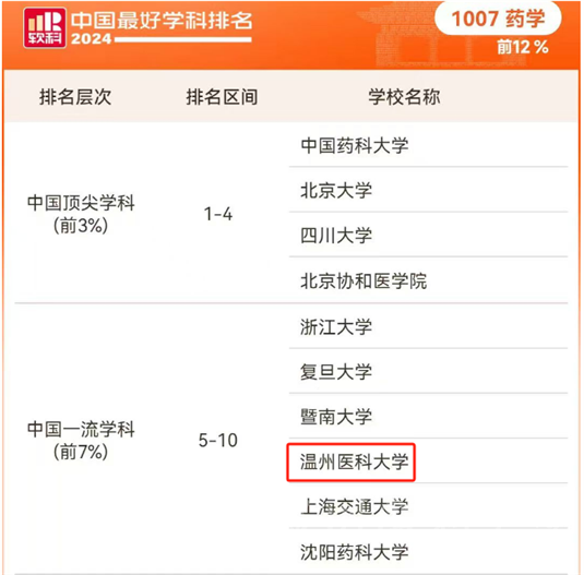 2024年10月15日,高等教育评价专业机构软科正式发布“2024中国最好学科排名”。开云体育 药学学科跻身3%-7%区间,提升到前7%,全国排名第8,较2023年提高4个位次,学科水平和实力进入全国药学学科第一方阵。