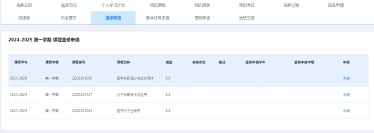 各位同学在5月16日--5月21日登录研究生管理系统:培养---重修申请---点击课程后的申请按钮即可完成该门课程的重修申请。