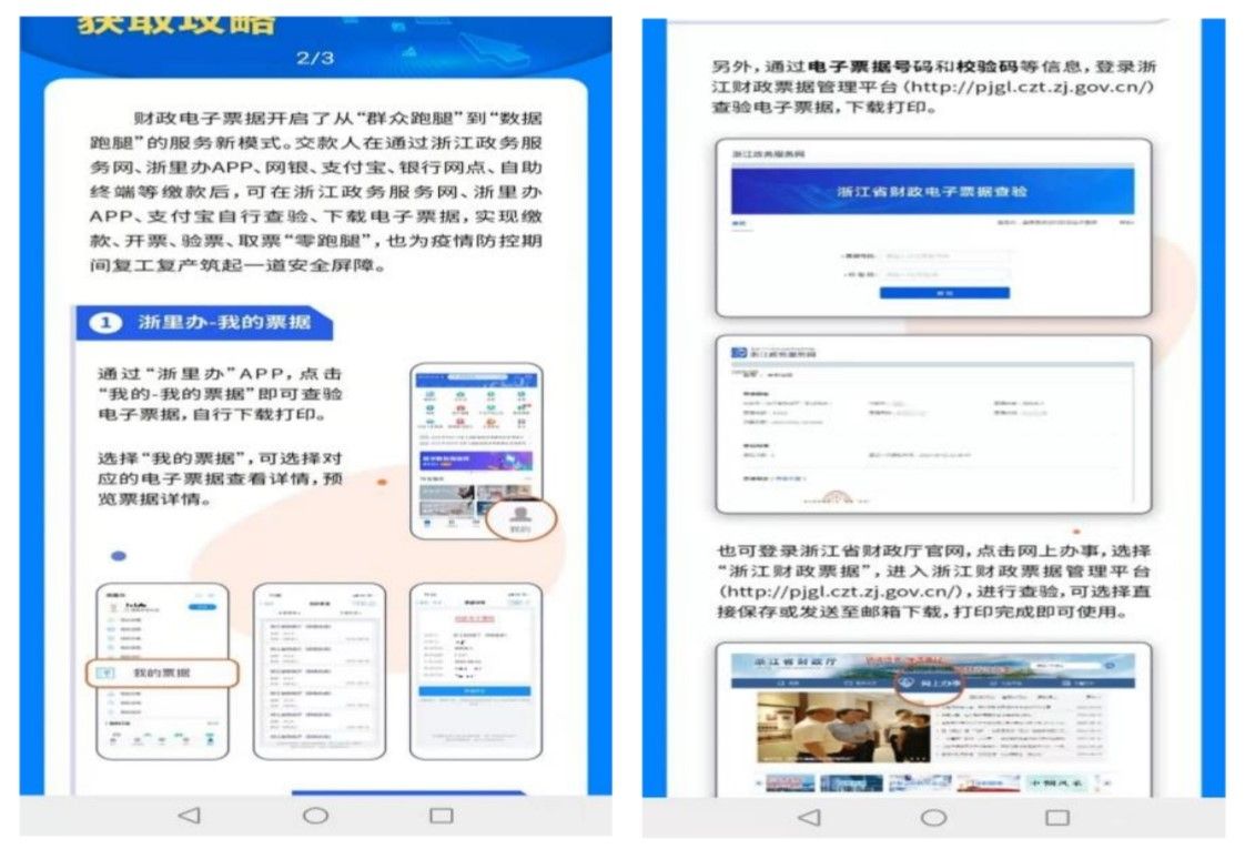 2.10月10日后可进浙里办APP(先下载安装)“我的票据”下载、打印电子票据,也可登录浙江财政票据管理平台下载、打印电子票据。