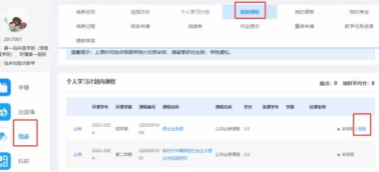 (2)操作步骤:点击培养/个人培养计划,选择方案的中另一门选修课/退选冲突的课程。